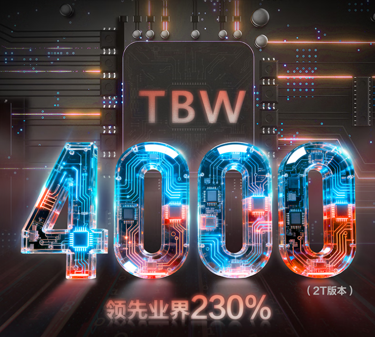 华为表示,想要5年内用完4000TBW≈每天下载110款中大型游戏,或每天生产80小时日常Vlog视频,或每天绘制4360份专业PSD图稿。