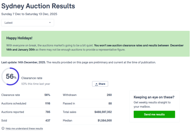 本周悉尼的房产拍卖成交率初步数据为56%,墨尔本为63%。