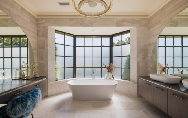 豪华大厅,标准网球场、无边泳池、法国橡木人字拼地板,影院,主厨房和辅助宴会厨房,占地1792平米,这幢位于Ruby St 28号的七室六卫六车库豪宅的前拥有者为牙医Daniel Adamo及妻子Katie,5年前以2200万澳元的价格售出。