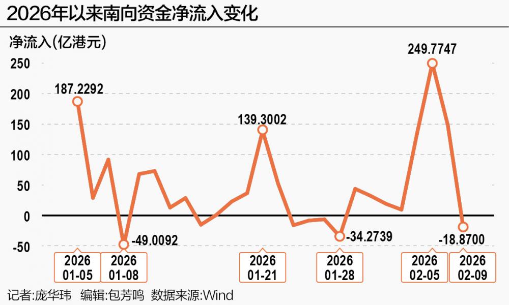 在持续7个交易日大量南向资金涌入港股后,2月9日收盘前资金流向发生微妙变化,当天南向资金转为净流出18.87亿港元,说明市场仍有分歧。