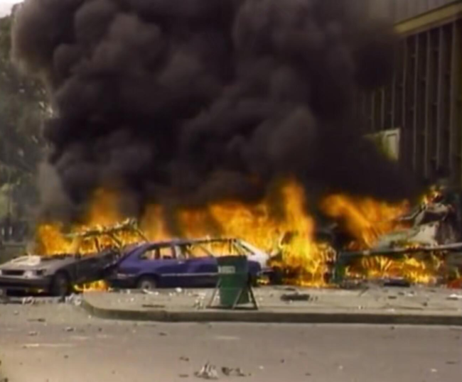 就为了杀死这么一个人,巴勃罗下令用一辆装有500公斤炸药的汽车冲向情报局(DAS)大楼,爆炸造成100多人死亡和2500万美元的经济损失……