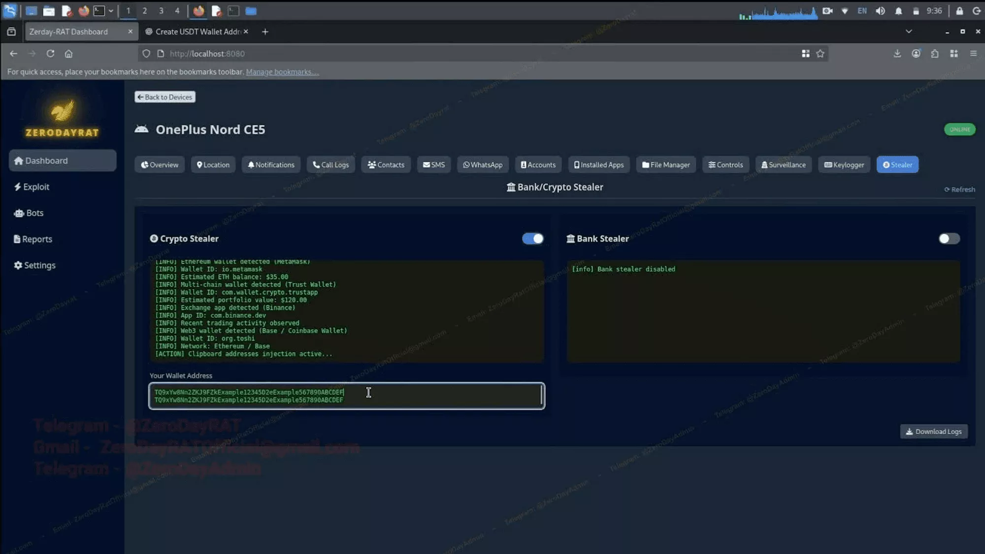 在最具侵入性的层面上,ZeroDayRAT 集成了实时监控和键盘记录功能,可在后台开启摄像头、麦克风和屏幕录制,对用户的现实环境和设备操作进行全面窥探。 iVerify 指出,其键盘记录模块可以截获用户在屏幕上的每一次点击和输入,并实时显示当前屏幕画面,使攻击者得以精准获取密码、聊天内容以及任何输入的数据。 此外,该工具箱还特别针对移动支付服务、银行应用和加密货币钱包,目的是窃取数字资产和金融信息。