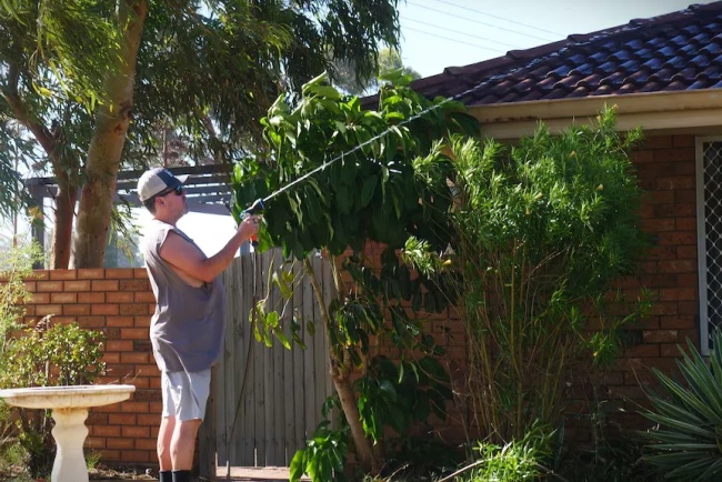 当地居民也严阵以待。Spalding社区居民Ross Reynolds整个早晨都手持水管在自家房屋周围巡逻。
