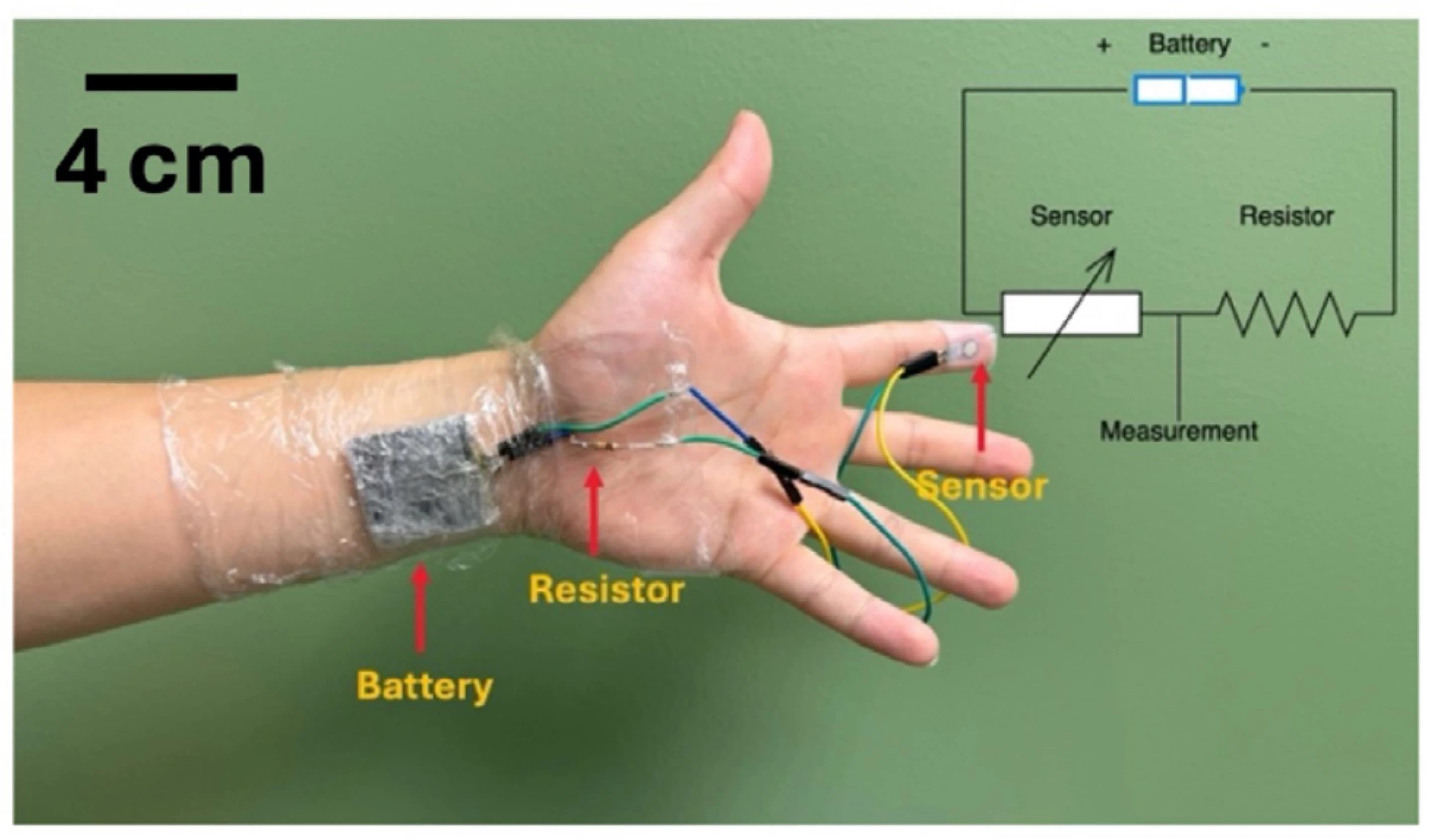 为验证实际应用可行性,研究人员制作了一款佩戴在手指上的简易压力传感器,并由这块约1×1厘米的小型电池供电。 测试显示,该电池能够稳定驱动传感器工作,其输出功率仅略低于一节标准AA电池,表明其在微型可穿戴电子中的供电能力已具备实用价值。