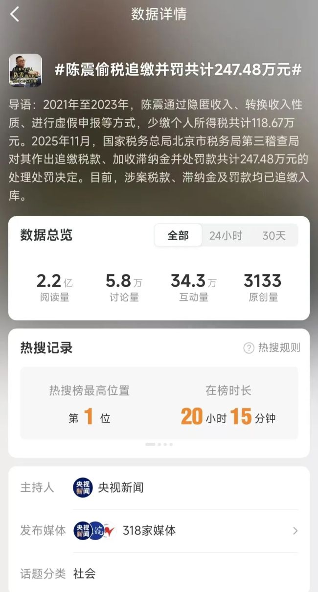 最 近这段时间, “陈震偷税案”闹得沸沸扬扬,相关消息直接刷屏各大社交媒体平台。作为全网拥有2400w+粉丝的顶流车评人,陈震不缺流量、热度、广告,早已靠着互联网 赚得盆满钵满。