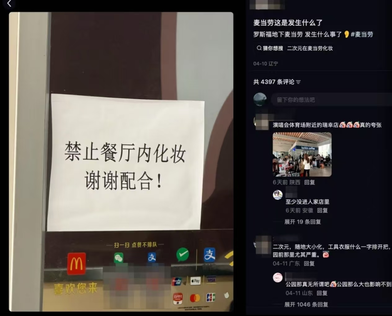 有网友评论称,曾多次看到二次元爱好者在该餐厅内化妆,相关工具、衣物随意摆放,影响正常就餐秩序。