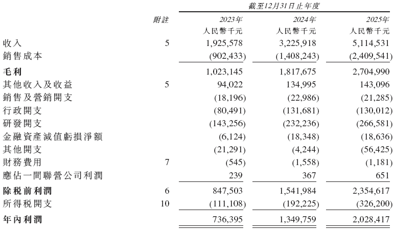 招股书显示,在过去的2023年、2024年和2025年,天孚通信的营业收入分别为人民币19.26亿、32.26亿和51.15亿元,相应的净利润分别为人民币7.36亿、13.50亿和20.28亿元。