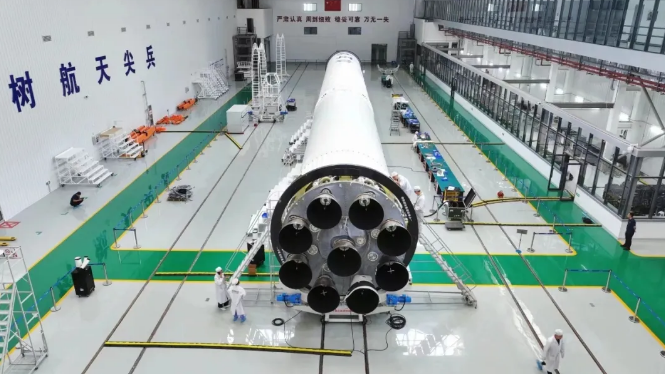整流罩为国内最大尺寸的轻量化全碳纤维整流罩,直径4.2米,高度12米。