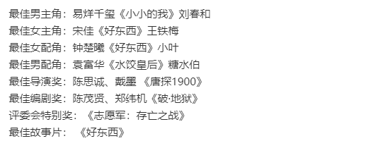 看下金鸡奖得奖名单。