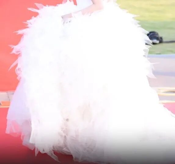 场内另一件白色礼服要别致和亮眼些。