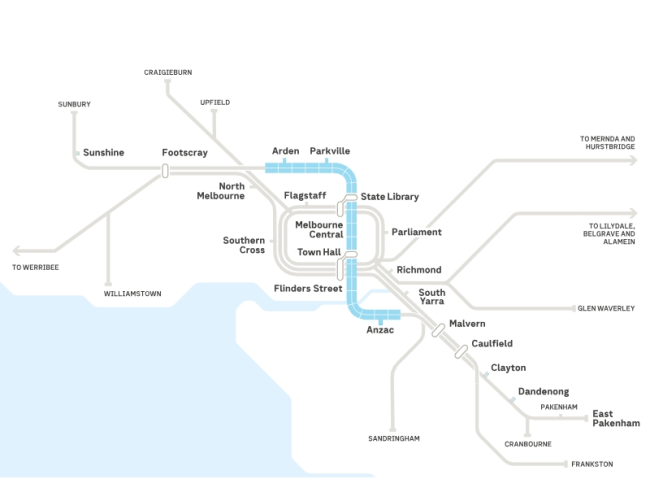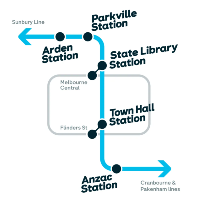 Metro Tunnel是一条南北纵贯墨尔本CBD的双线通勤铁路项目,全长9公里,将墨尔本最繁忙的两条线路——西北区的Sunbury线和东南区的Cranbourne/Pakenham线通过隧道直接相连。