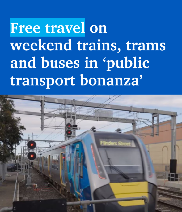 另外,为庆祝项目开通,维州政府将在今年12月和明年1月的每个周末,提供全州范围内公共交通全部免费的福利,涵盖火车、电车和公交车服务。