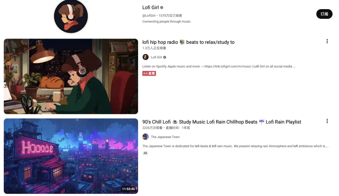 这种陪伴性音乐的播放量非常高|图源:YouTube