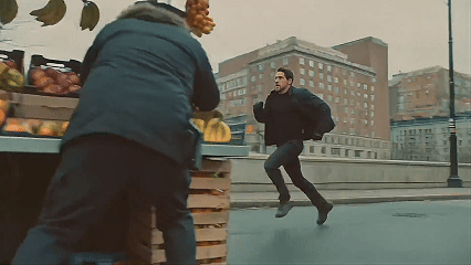 比如,官方演示了一个例子:提示词要求“摄像机跟随一个黑衣男子逃跑,撞翻水果摊,背景有人群叫喊”。Seedance 2.0生成的片段里,镜头流畅地从跟随切换到侧拍,男子惊慌的动作、水果摊翻倒的物理效果、背景音效的完美融入,简直一气呵成。