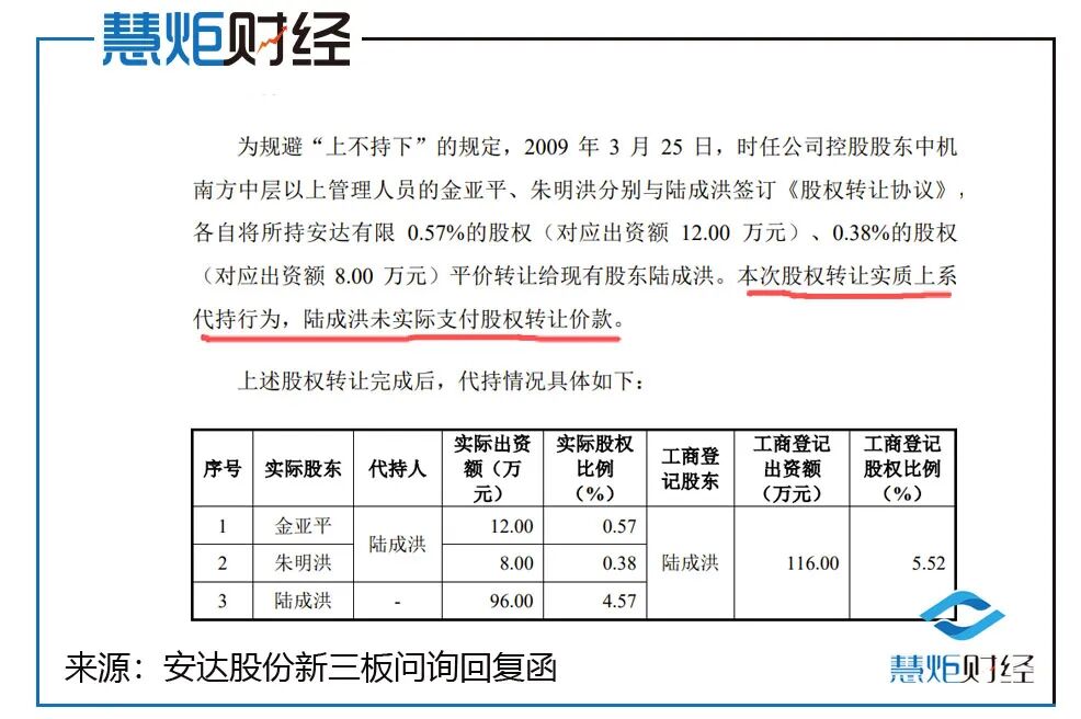 慧炬财经注意到,在2009年3月25日,时任控股股东中机南方中层管理人员金亚平、朱明洪为规避"上不持下"规定,将合计0.95%的股权平价转让给陆成洪(报告期内曾任副董事长,2023年8月辞任),实质为股权代持,陆成洪未支付任何转让价款。