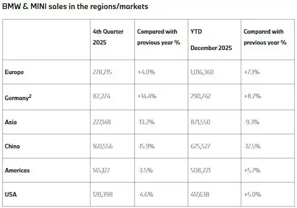 中国仍是宝马集团全球最大市场,全年累计销量为625527辆,但同比下降12.5%,也是全球降幅最大的单一市场。