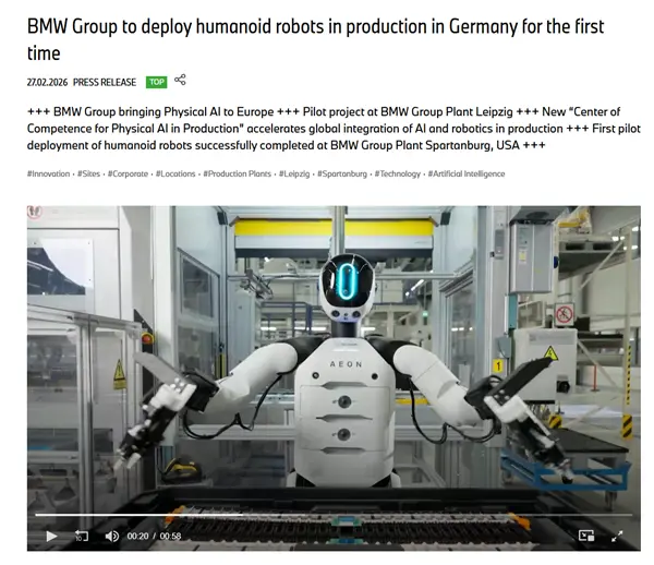 美国工厂的试点证实,类人机器人能够安全地执行精确、重复的工作步骤——如以毫米级精度定位组件,并为物理人工智能在生产中的进一步部署提供了重要见解。
