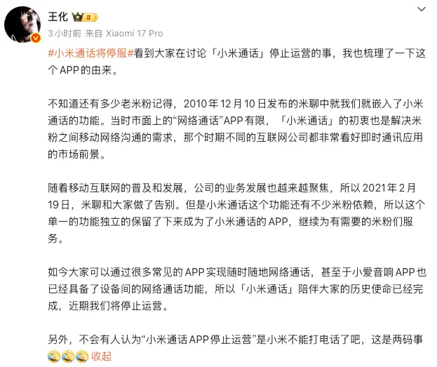 这也是为什么,小米通话这冷门App官宣停止服务时。