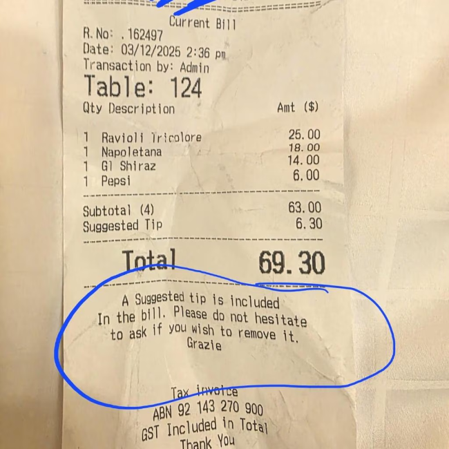 事实上,今年已经出现不少类似案例:Redfern 的 Island Radio 自动加 3% 小费(可取消);Sofitel Wentworth 里的Tilda Dining自动加7%小费...
