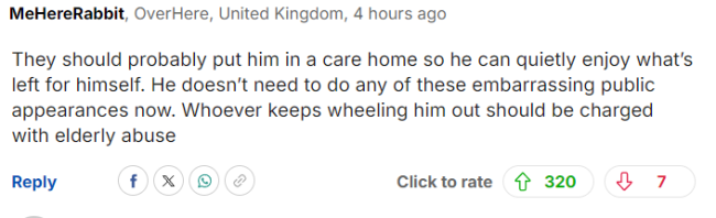 还有人说得更直白:那些当年骂川普的人,对拜登的失误却集体失声。“典型的左派双标”。甚至有人觉得拜登现在的状态根本不适合继续公开露面,“应该送去养老院安静生活”,继续推他上台、“强行营业”的人,“简直是在虐待老人”。