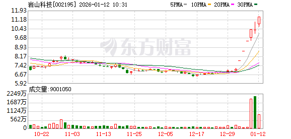 岩山科技再度涨停,6个交易日内录得5个涨停,累计涨幅为60.65%,累计换手率为93.01%。截至9:59,该股今日成交量8.82亿股,成交金额97.81亿元,换手率15.75%。最新A股总市值达645.88亿元,A股流通市值637.98亿元。