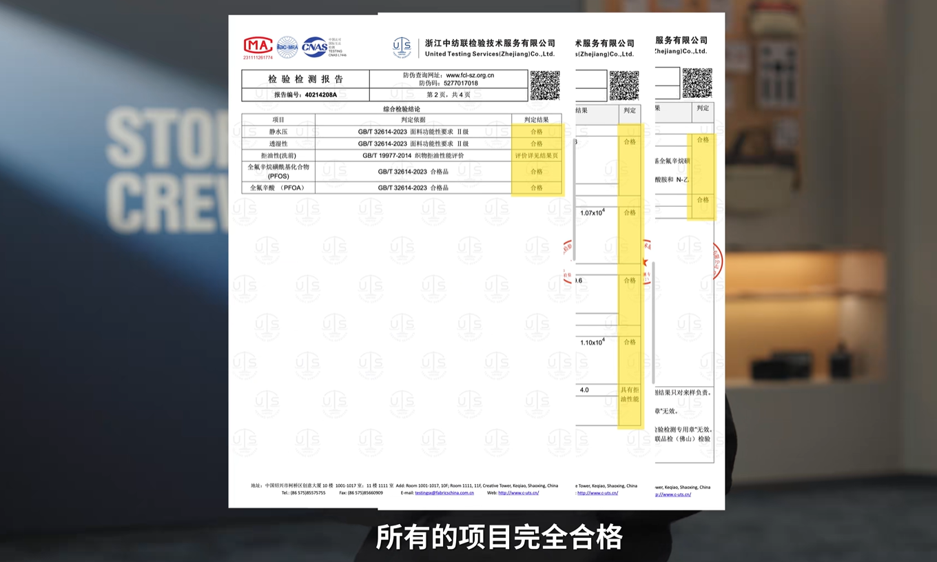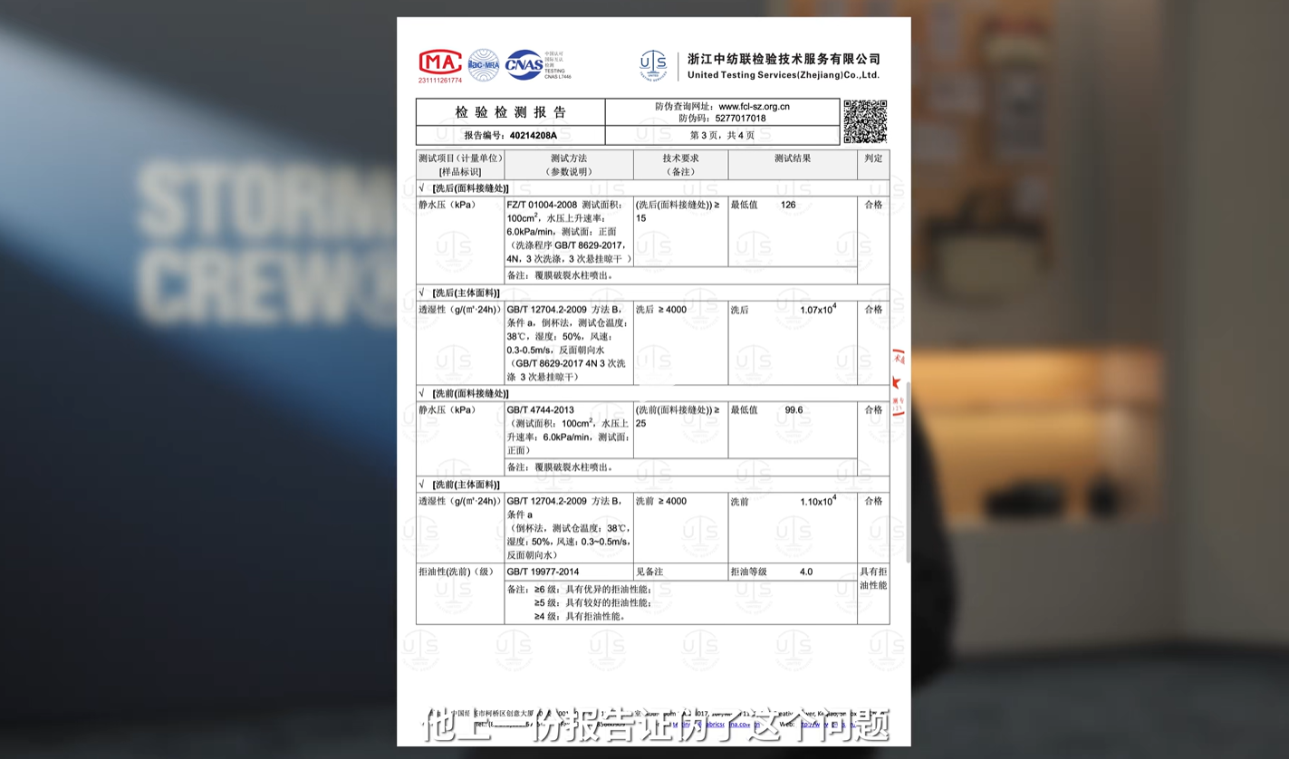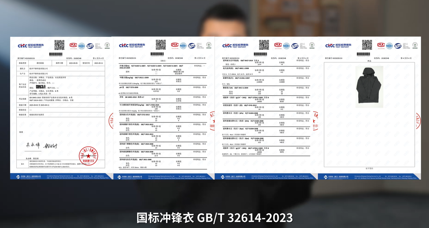 同时,影视飓风也可以提供他们的完整检测报告,国标冲锋衣GB/T 32614-2023,结果均为合格。