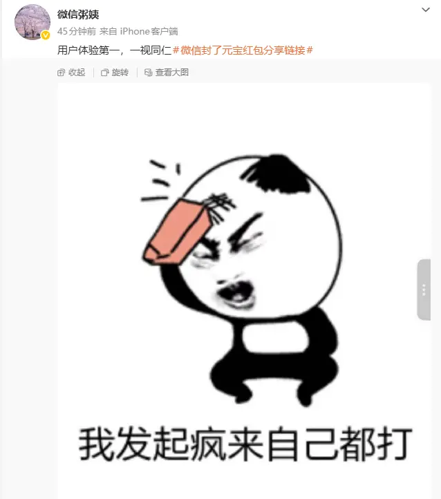 元宝微博发文表示,元宝正在紧急优化调整分享机制,将尽快上线,确保用户抢红包体验。
