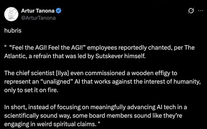 简而言之,一些董事会成员似乎不是在专注于以科学严谨的方式切实推动AI技术进步,而是在搞些奇怪的玄学主张。