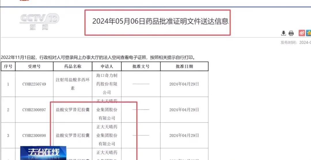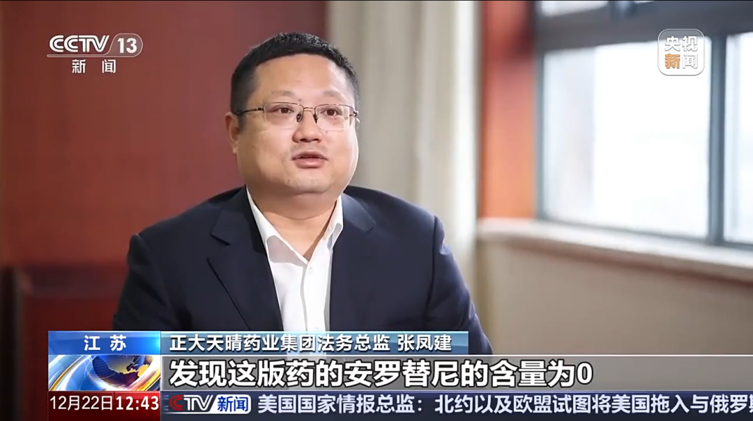 正大天晴药业集团法务总监 张凤建:回来之后我们研究院做了一下检测,发现这版药的安罗替尼的含量为0。