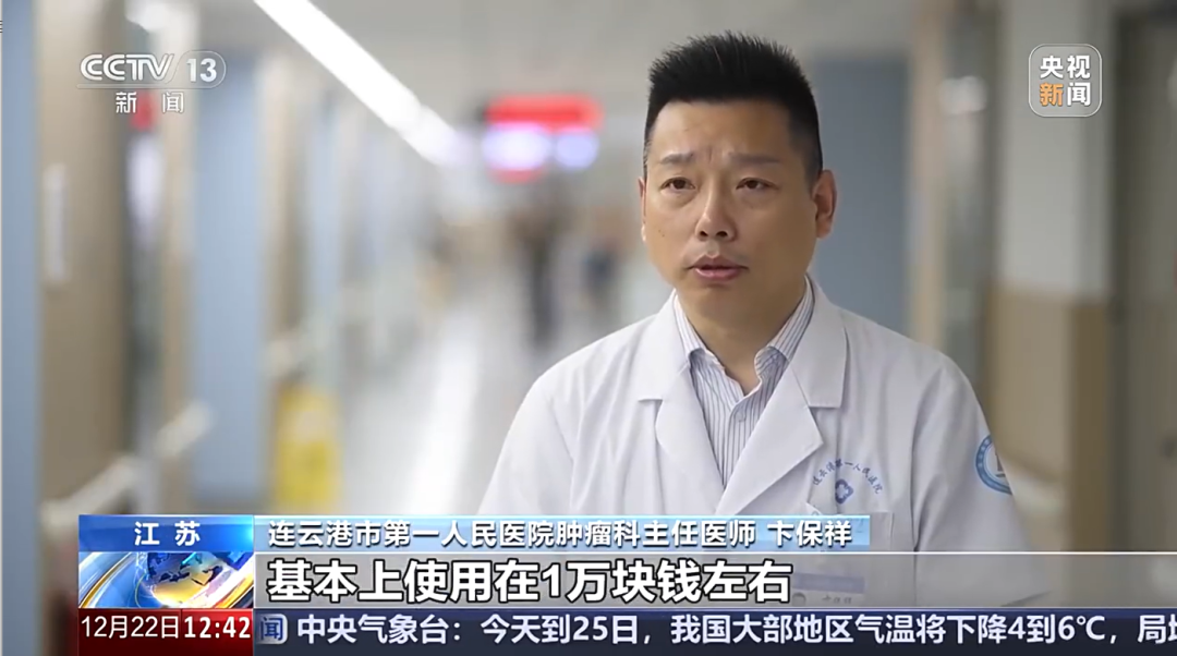 连云港市第一人民医院肿瘤科主任医师 卞保祥:这个药物在纳入医保前,患者一个月要花1万元左右。纳入医保后,以职工医保为例,一个月的花销降至了1000元左右。