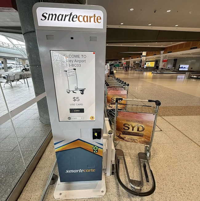 凡是在悉尼国内或国际航站楼出发的旅客,都需支付5澳元才能使用推车;