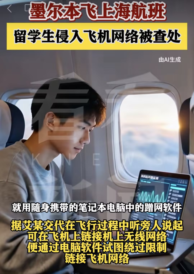 这位被警方称为艾某的中国留学生,竟然在飞机上试图侵入航司的网络服务器,结果被机场公安依法进行查处!
