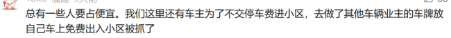 “总有一些人要占便宜。我们这里还有车主为了不交停车费进小区,去做了其他车辆业主的车牌放自己车上免费出入小区,被抓了。”