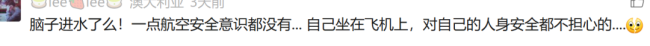 “脑子进水了吗!一点航空安全意识都没有... 自己坐在飞机上,对自己的人身安全都不担心的....”