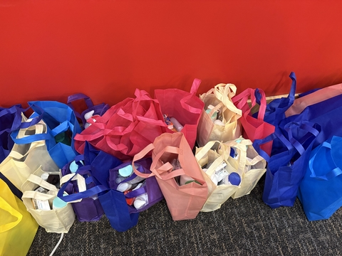 紧急资源中心向学生提供了装有个人护理用品的袋子