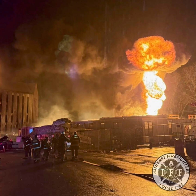 2025 年 11 月 7 日,上周五晚间,位于马萨诸塞州阿默斯特镇 Olympia Drive 的一处学生公寓区域突发严重火灾。起火点位于正在施工的建筑工地,火势在强风助推下迅速扩大,并在短时间内吞噬了紧邻的学生公寓楼。火情于当晚 8 点 18 分被首次上报,消防部门随后发布三级警报,大批救援力量从周边多个城镇赶来支援。
