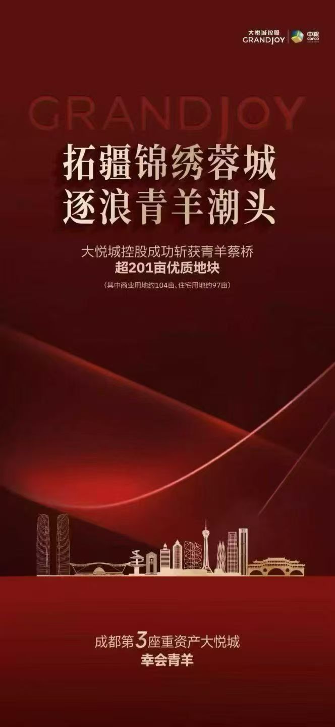 11月19日,备受关注的青羊区蔡桥4宗土地正式最终“花落”大悦城,总耗资26.5亿元。这意味着成都或将真正迎来第三座大悦城商业综合体。