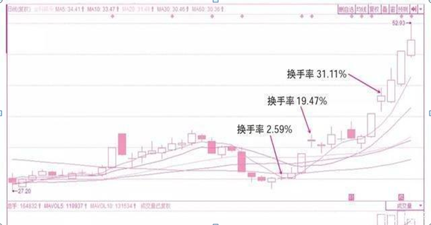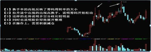 2.拉升途中出现的高换手。
