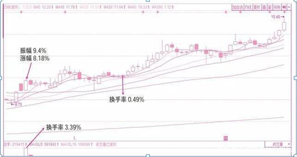 股价一旦起动,拉高更离不开换手率的支持,换手越是积极、越是彻底,股价升得越是轻快。因为获利盘不断在换手的过程中被清洗,平均成本不断地提高,上行所遇的抛压也大为减轻。