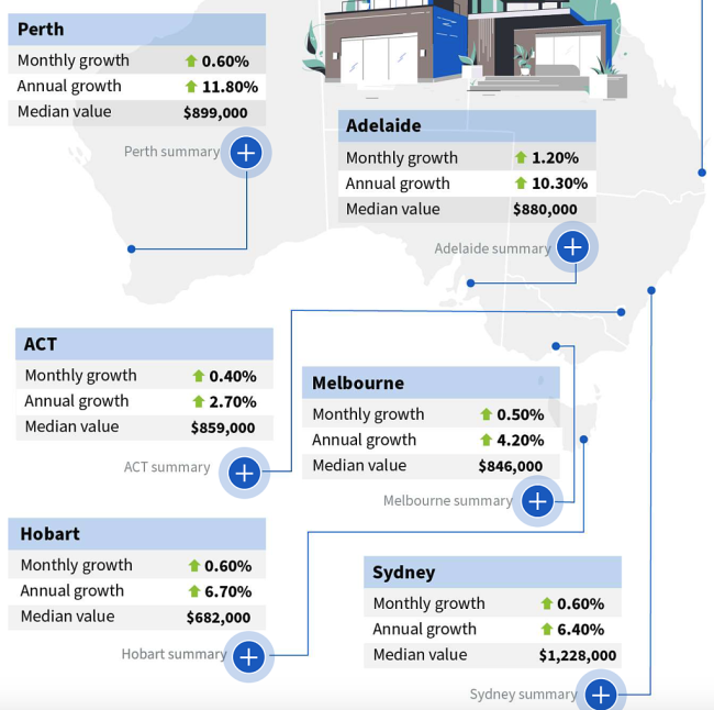 与此同时,房地产市场持续创下历史新高,REA集团数据显示,过去12个月全澳房价上涨7.5%,房价中位数增加65,200澳元,现已达到85.8万澳元,比五年前上涨51%。