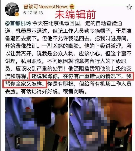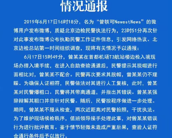 更早一些时候,她闹出过“边检门“风波,那会她走安检通道着装不规范,民警要求她人工安检复核,她就和人家叫板,事后还把民警的编号发到网上引导网暴,最终她本人自食恶果,喜提蓝底白字的通报。