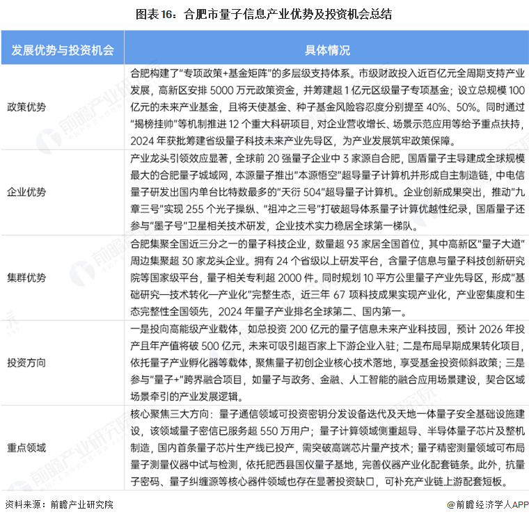 从企业分布来看,合肥市高新区集聚全市80%以上量子企业,形成“量子大道”产业地标,覆盖全链条环节,是全国量子产业最密集区域,集聚了大量的量子信息优势企业,包括科大国盾、本源量子、国仪量子、中电信量子、中科星光等。