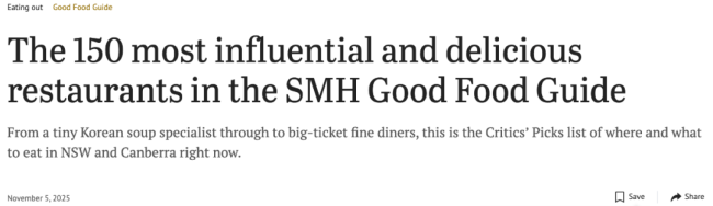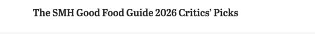 2026 Sydney Morning Herald Good Food Guide 共有超过600条餐厅点评,是迄今为止规模最大的一版。