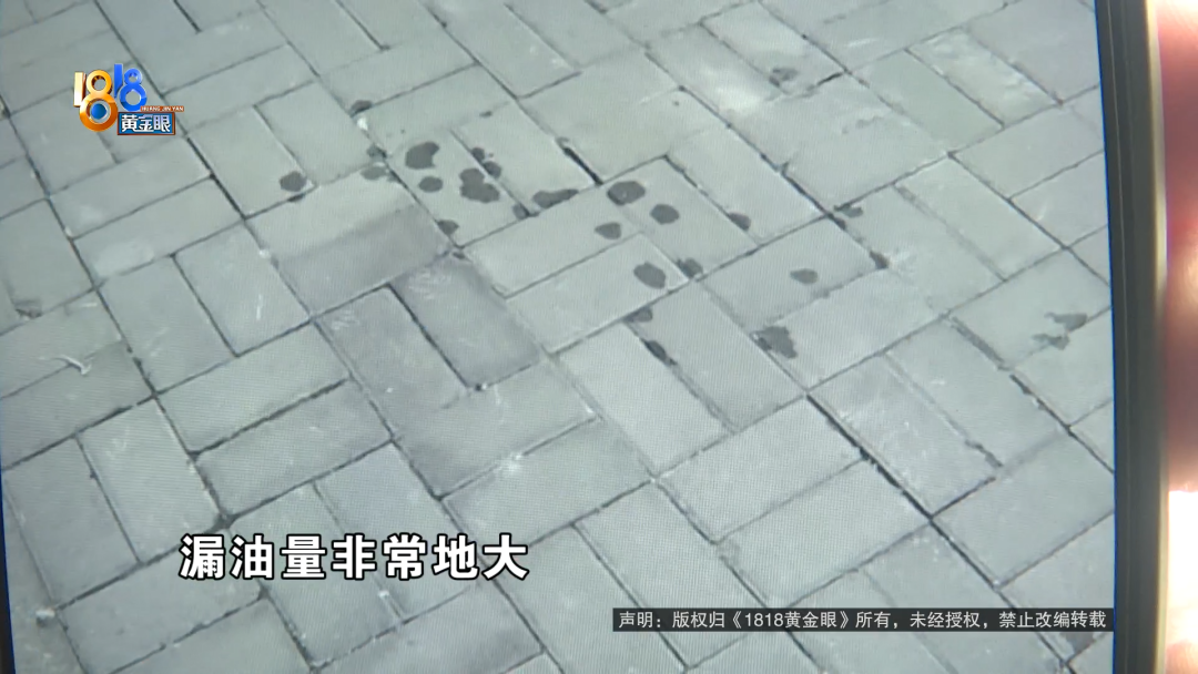 但在第二天开车的时候,行驶中故障灯就亮了起来,下车检查的时候,漏油量非常地大,地上一摊摊一条条痕迹都有。