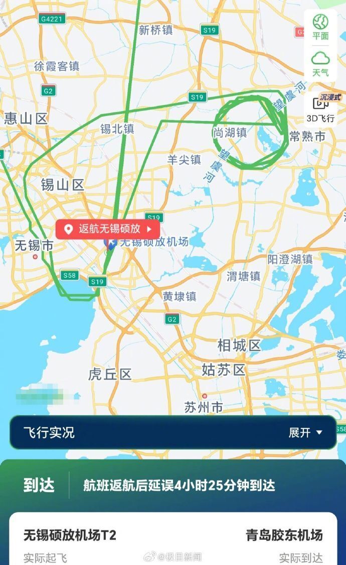 今日上午,无锡机场工作人员和航司客服回应称,查询显示“公司原因”返航,具体情况暂未公布。