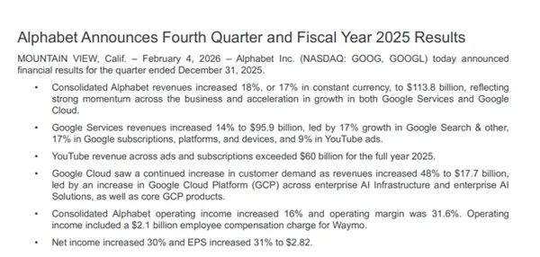 不仅如此,在Google众多业务中,云业务成为了最大亮点,四季度Google云收入同比接近暴涨50%,到2025年末,Google云的年化营收已超过700亿美元。