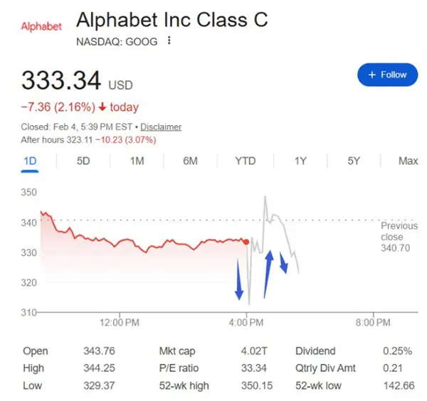 不过话虽如此,财报看上去是全面开花,但Google的股票在当天却出现了过山车式的反复震荡:盘后曾跌7.5%,市值瞬间蒸发约3500亿美元,后反弹转涨,盘后一度转涨超4%,市值在数分钟内剧烈波动约8000亿美元,然后又转跌。