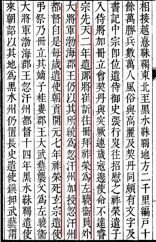 崔忻跋涉数月到达震国后,宣谕大祚荣为“左骁卫大将军、渤海郡王”,以所统为忽汗州,大祚荣领忽汗州都督。大祚荣 “自是始去靺鞨号,专称渤海”。