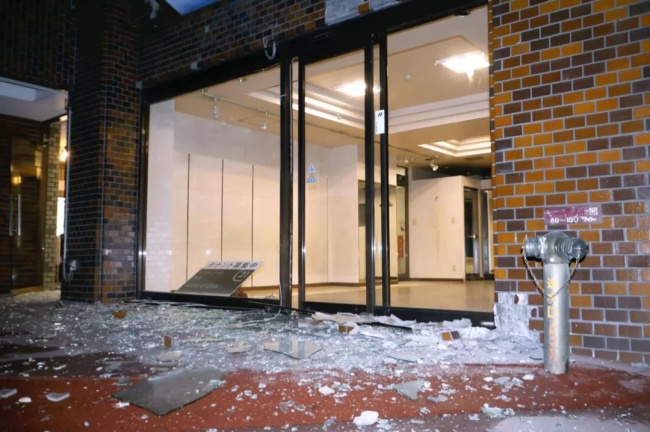 ▲地震后日本青森县八户市道路上散落着玻璃碎片