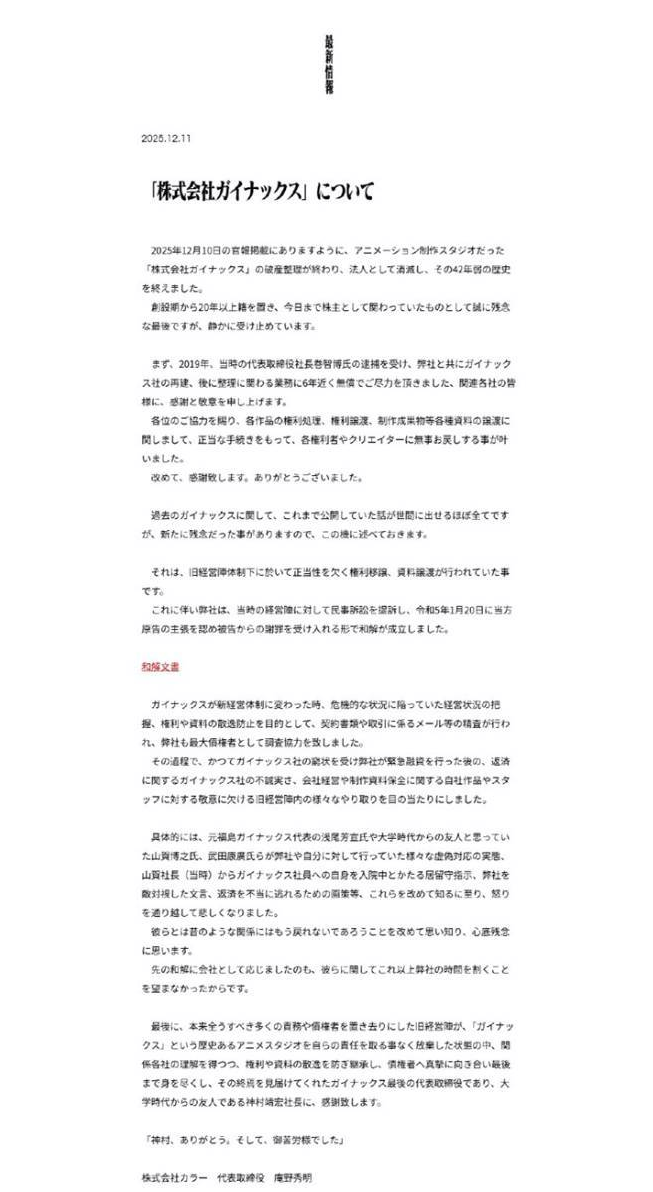 2019年,时任社长因涉刑事案件被捕,公司运营几近停滞。此后,在Khara等公司的协助下,GAINAX虽尝试组建新团队以处理资产与债务,但由于历史负债过重,最终于2024年5月申请破产。